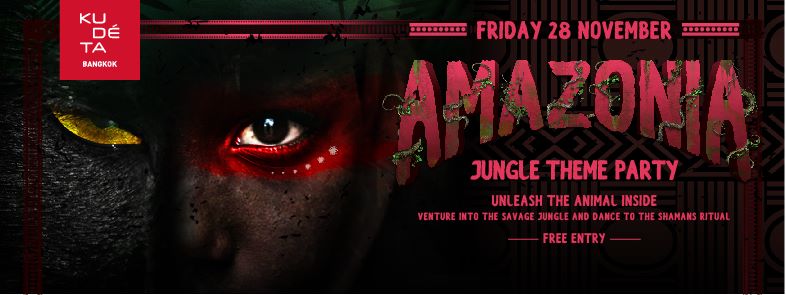 KU DÉ TA Bangkok Presents AMAZONIA – Jungle Theme Party. The Club Lounge transforms into the Amazonian jungle. For this event, we have special performances as well as prizes for best dressed, so release your wild side and dress up in your most creative tribal outfits and dance the night away!
