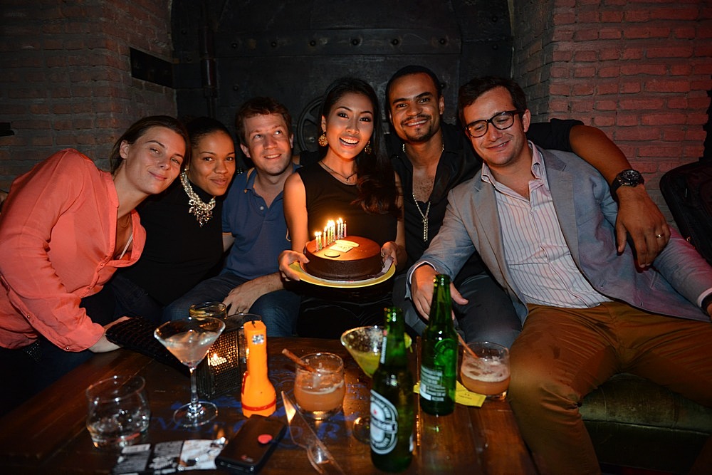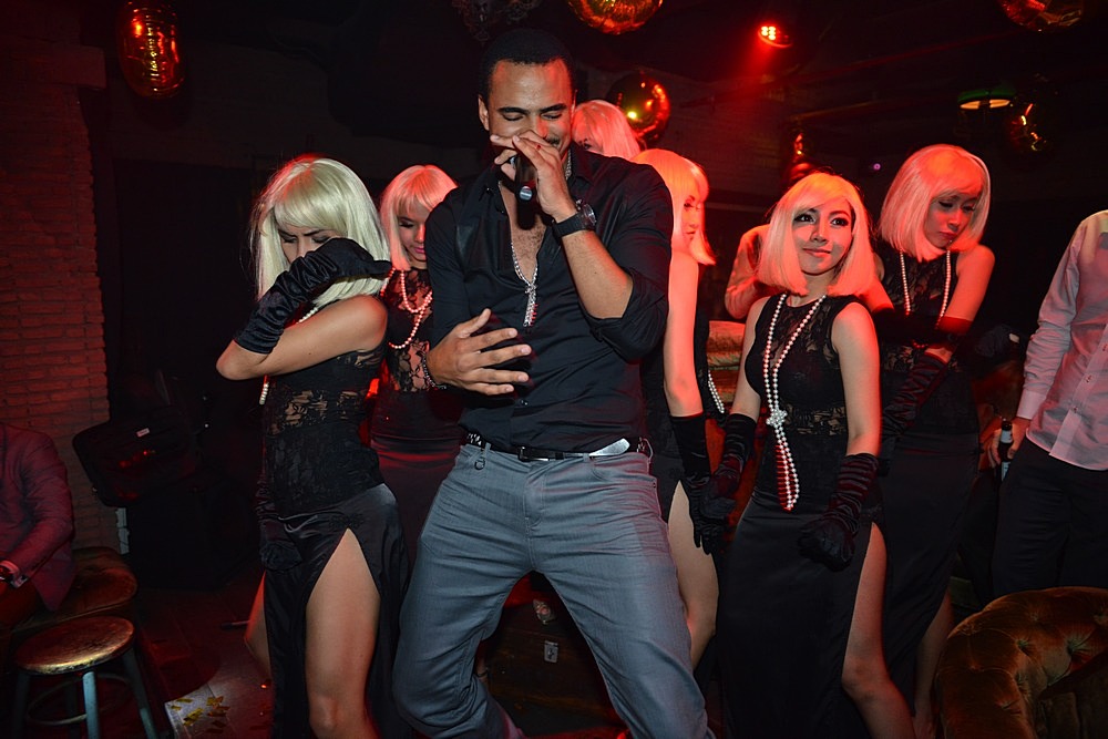 Mohombi made his first appearance in Bangkok in presence of his wife and friends. He gave us a very surprise show at Maggie Choo’s at the occasion of his friend’s birthday Kamonrat Ladseeta. Mohombi also made everyone happy at Levels the night before. The jazz band of Maggie Choo’s did a great improvising work with the rising star. They started to play with an easy going jazz beat and then the famous song “under the coconut tree” came out of the speakers. Mohombi was well surrounded by all the beautiful Maggie Choo’s girls and demonstrated his great dancing skills.